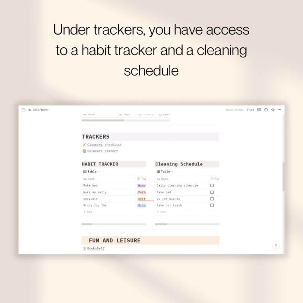 The following notion template comes with the following: