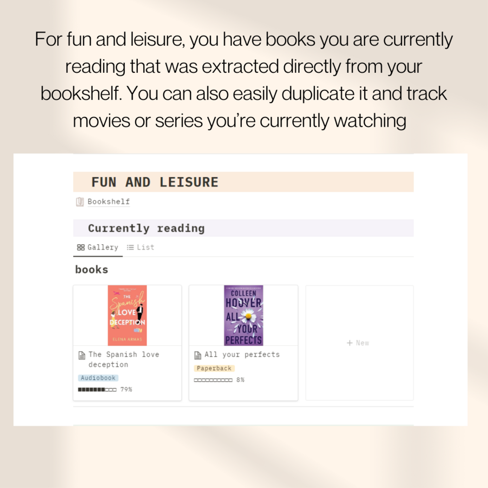 -A bookshelf to keep track of the books you’re reading and your wishlist
